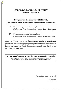 Ιερές Ακολουθίες Δεκεμβρίου 2025 |