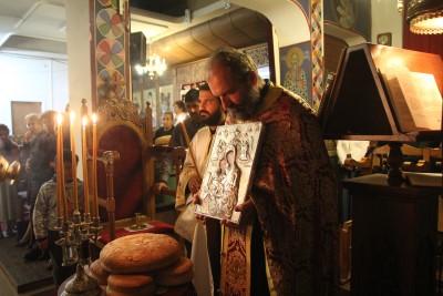 τελέστηκε ο εσπερινός και στη συνέχεια μια μικρή νυχτερινή ακολουθία με Άγιο Ευχέλαιο,