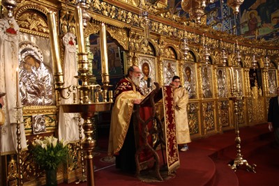 Χαῖρε, δεκτόν πρεσβείας θυμίαμα· χαῖρε, παντός τοῦ κόσμου ἐξίλασμα.