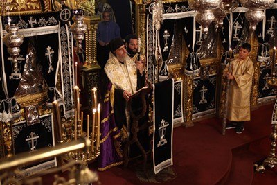 η τοποθέτηση Του στον σολέα του Ναού καθώς ψάλλεται κατανυκτικά το ακόλουθο τροπάριο.