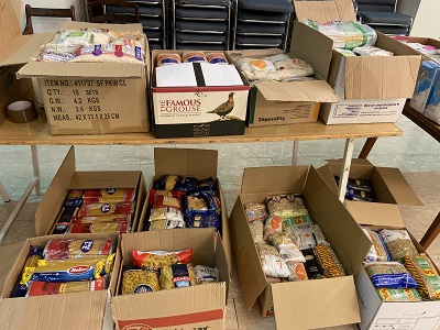 Αφού έγινε η διαλογή των τροφίμων τοποθετήθηκαν σε κιβώτια ξηρές τροφές, κονσέρβες,