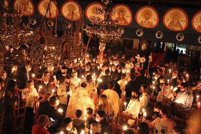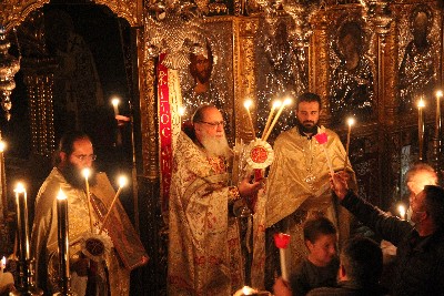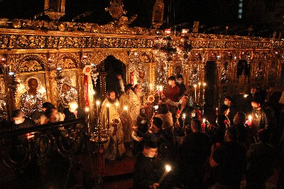 «Δεύτε λάβετε Φως εκ του ανεσπέρου φωτός και δοξάσατε Χριστόν τον αναστάντα εκ νεκρών. Τὴν Ἀνάστασίν σου Χριστὲ Σωτήρ, Ἄγγελοι ὑμνοῦσιν ἐν οὐρανοῖς, καὶ ἡμᾶς τοὺς ἐπὶ γῆς καταξίωσον, ἐν καθαρᾷ καρδίᾳ σὲ δοξάζειν»