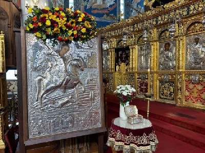 ιερείς του ναού μετέβησαν με την εικόνα του Αγίου Δημητρίου