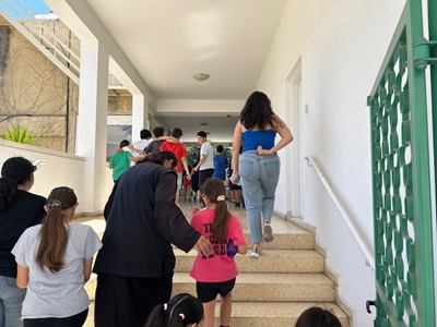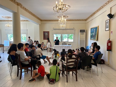 μεγάλοι, παιδιά και κατηχητές, στην αίθουσα του ναού